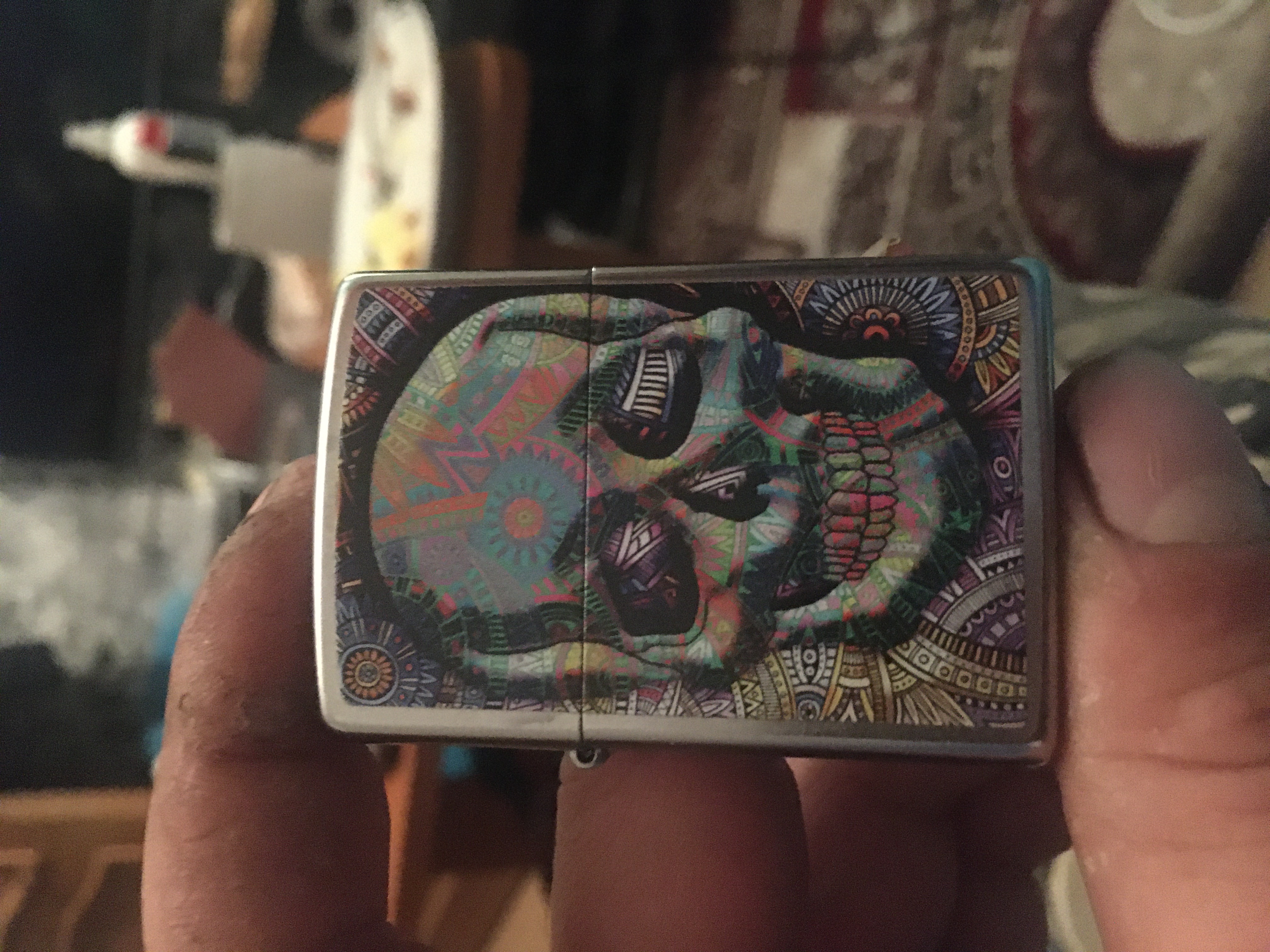 Пришла пора раскрасить в яркие цвета свою коллекцию темных черепов, пополнив ее этим геометрическим образчиком. Нанесенный по технологии создания цветных изображений череп украшен разноцветными узорами в стилистике мандала, которые покрывают почти всю лицевую поверхность зажигалки Street Chrome™. Поставляется в подарочной коробке. Для оптимальной работы рекомендуется использовать только оригинальное топливо Zippo.